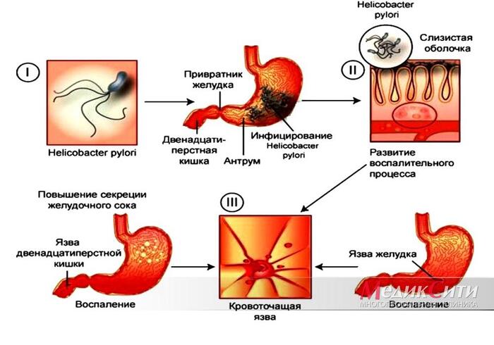 Возбудитель язвенной болезни Helicobacter Pylori представляют собой микроаэрофильную грамотрицательную бактерию, способную передвигаться по слизистой желудка с помощью жгутиков. Это один из немногих патогенов, хорошо ощущающих себя в агрессивных кислых средах. Инфицирование Helicobacter Pylori и приводит к язвенной болезни с последующим ее быстрым прогрессированием, распространением на соседние здоровые ткани. В роли провоцирующих факторов выступают: