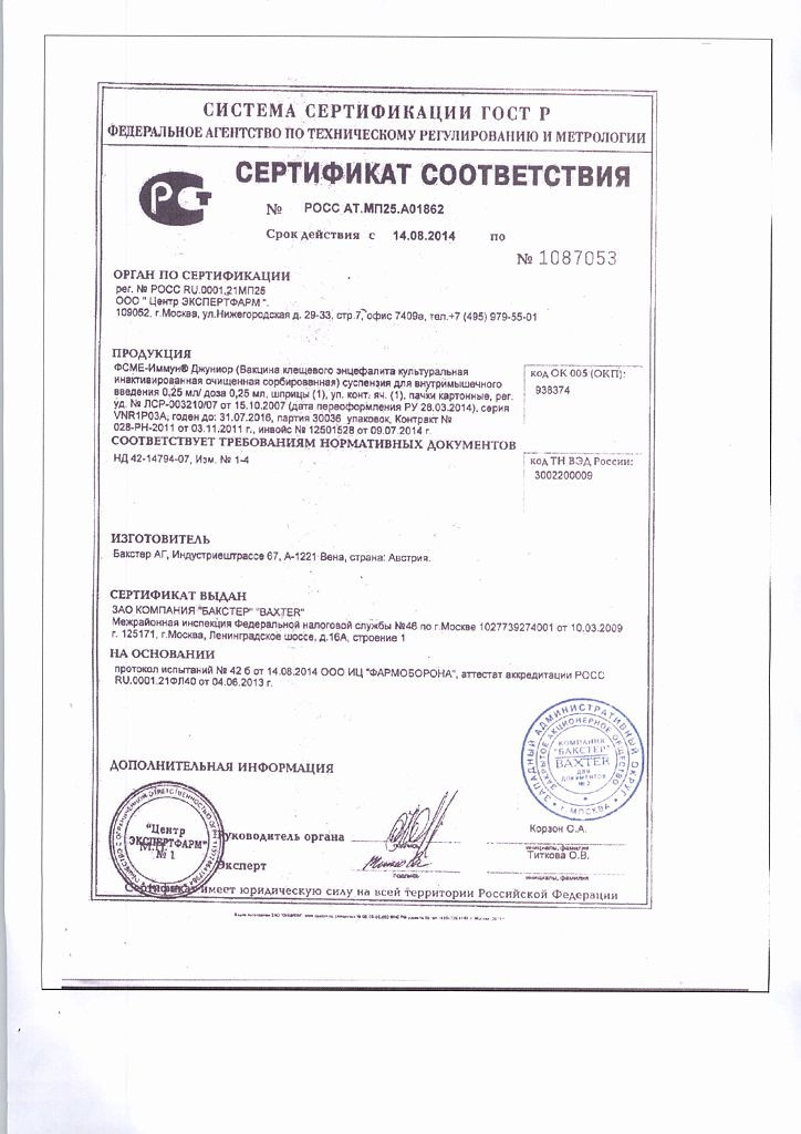 Прежде чем купить ФСМЕ Иммун Джуниор Инжект вакцина (FSME Immun Junior Inject) 0,25мл в ближайшей аптеке, нужно обязательно проконсультироваться с врачом. Самолечение опасно для Вашего здоровья.