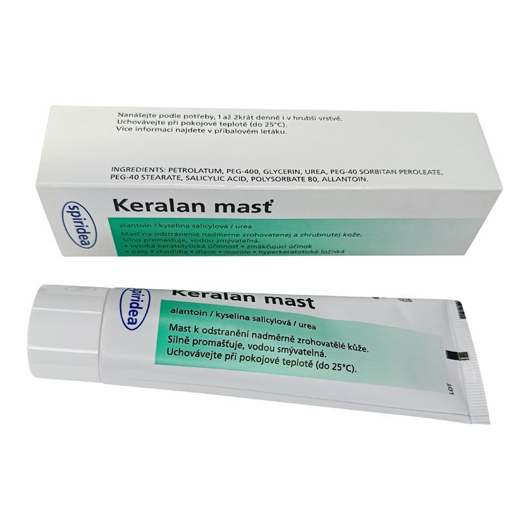 Гиперкератоз сопровождает ряд таких серьёзных кожных заболеваний, как чешуйчатый лишай, экземы, ихтиоз и псориаз. Использование мази Керасал, не содержащей кортикостероидов, позволяет успешно применять препарат для длительного лечения даже очень больших поражённых участков кожи. В состав мази входят всем известная салициловая кислота и мочевина, которые способствуют мягкому безболезненному отшелушиванию ороговевшего слоя и одновременно обеспечивают глубокое увлажнение кожи.