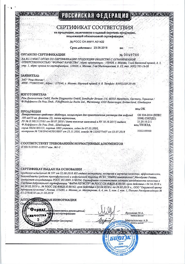 Прежде чем купить Мабтера конц. для инъекций в ближайшей аптеке, нужно обязательно проконсультироваться с врачом. Самолечение опасно для Вашего здоровья.