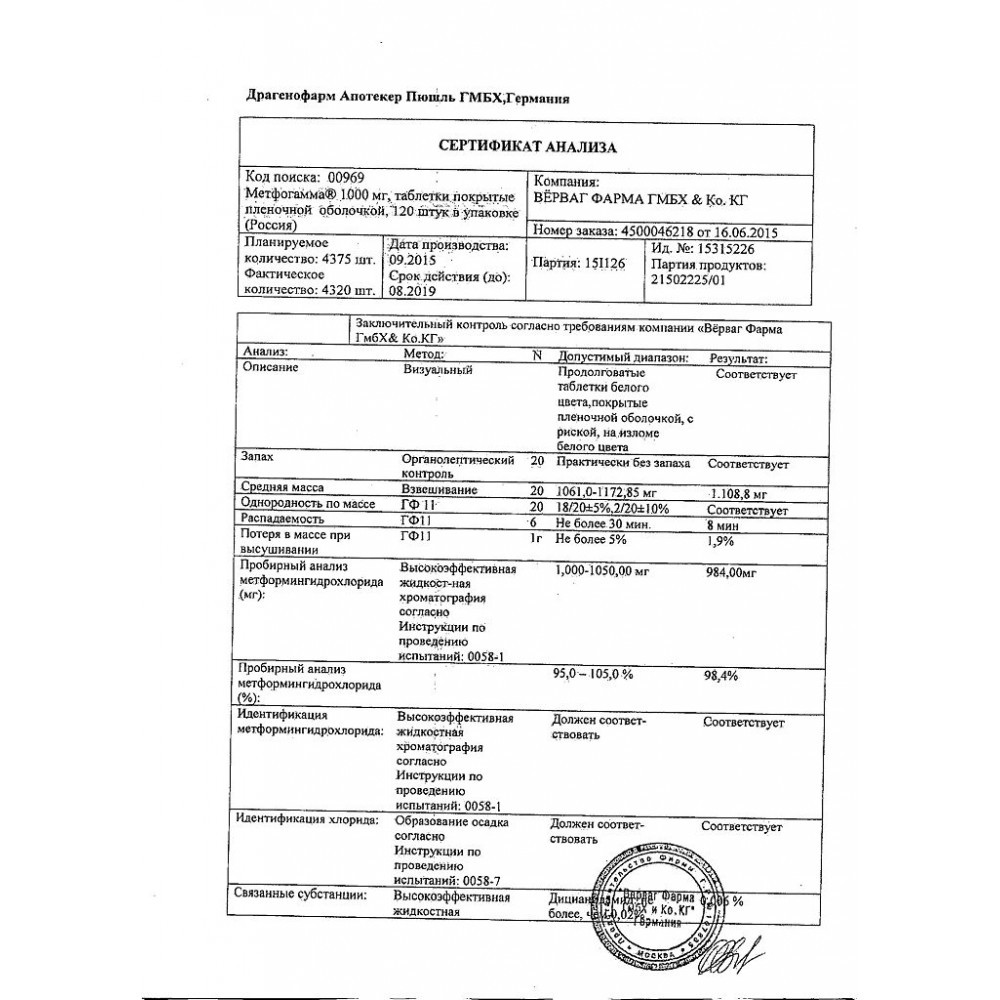 💰 Доступные цены препарата Метфогамма 1000 мг №120.