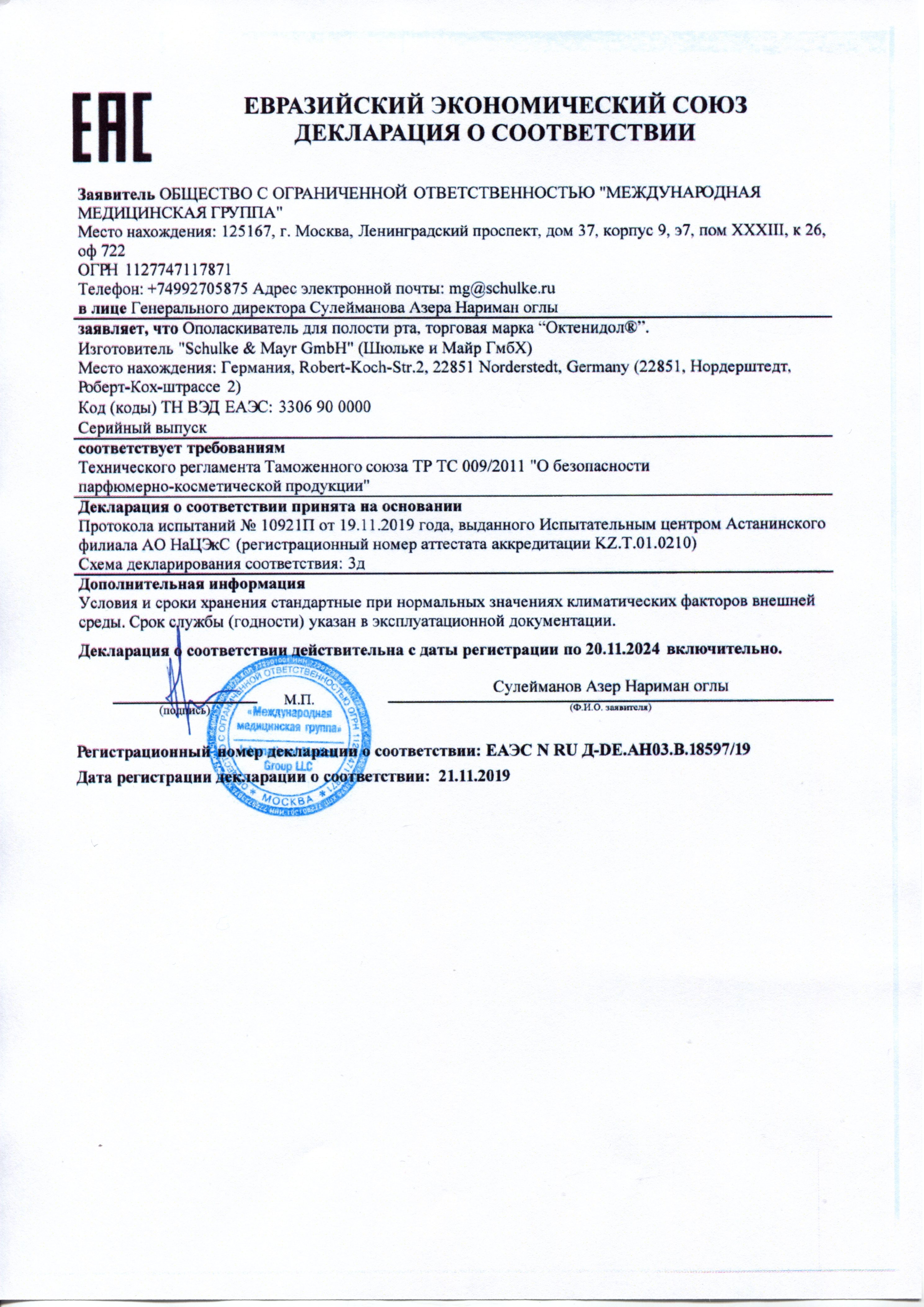 Прежде чем купить Октенидол (Octenident) Schulke Германия в ближайшей аптеке, нужно обязательно проконсультироваться с врачом. Самолечение опасно для Вашего здоровья.