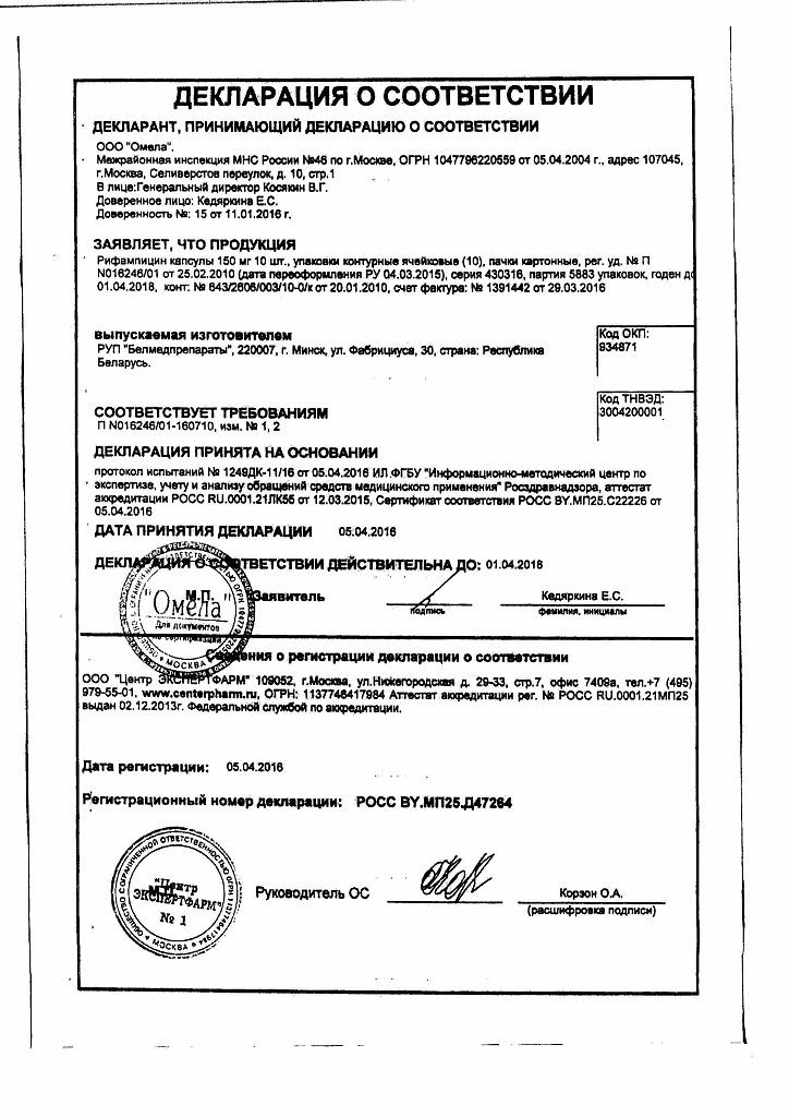 У нас была ситуация чудесных совпадений. Когда врач только выразил подозрение на инфекцию, и сказал, что неплохо бы купить Рифампицин. Я пошел в аптеки, а там нет. Зашел в интернет, нашел этот сайт, и сразу заказал. И как раз зе те пару дней, пока ехала доставка, сделали анализы и подтвердили, что нужен антибиотик. Забирать лекарство бежал уже с рецептом. И оно, к счастью, помогло жене.