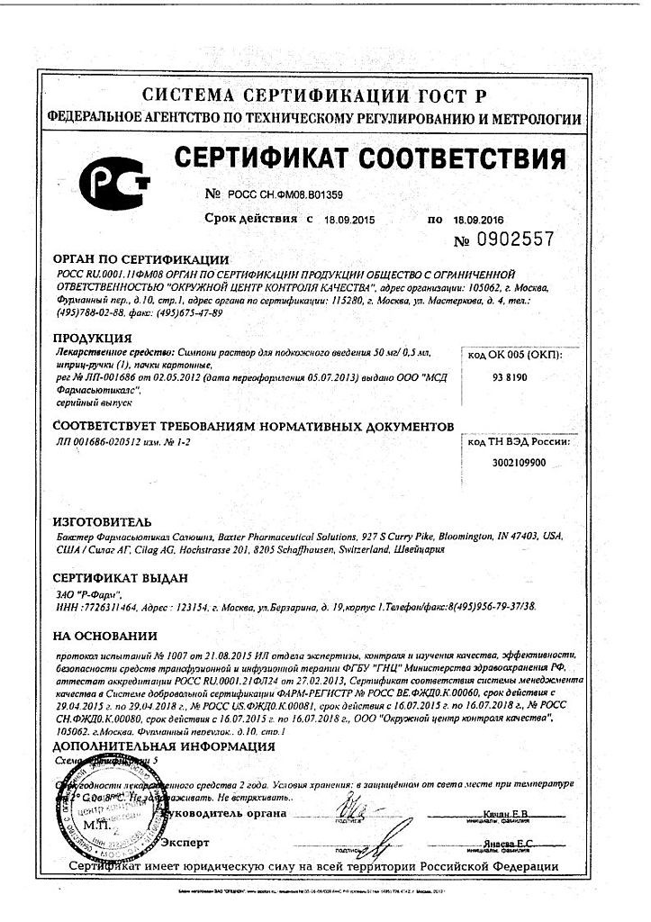 Прежде чем купить Симпони раствор для инъекций в ближайшей аптеке, нужно обязательно проконсультироваться с врачом. Самолечение опасно для Вашего здоровья.