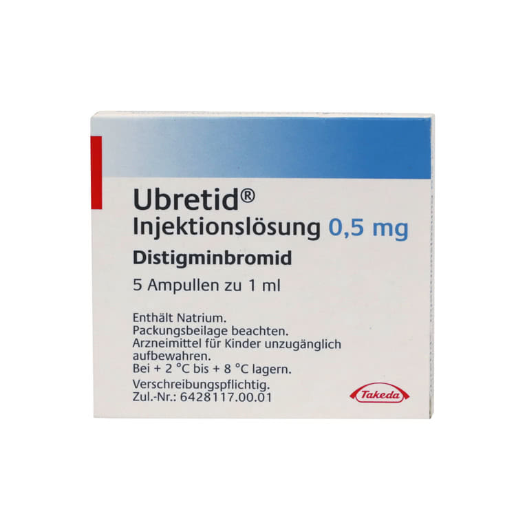 Данный эффект сохраняется на протяжении 20 часов. Кроме того, инъекционный препарат Убретид оказывает стимулирующее влияние на скелетную мускулатуру. Выраженный эффект достигается через 1-2 дня после начала использования препарата. Инъекционная форма препарата Убретид выпускается в картонных коробках, содержащих 5 ампул.