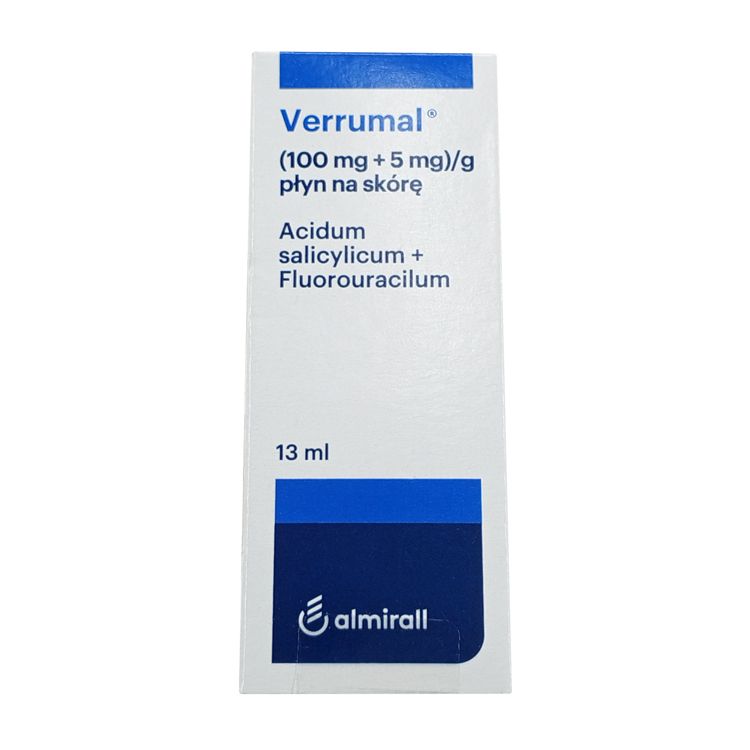 Раствор Веррумал – это противоопухолевый препарат, предназначенный для борьбы с бородавками. С его помощью можно избавиться от плоских, обычных и подошвенных бородавок. Основные действующие компоненты – салициловая кислота и фторурацил. Эти вещества не позволяют клеткам бородавки расти (создавать новые ДНК и РНК), из-за чего параллельно тормозится самовоспроизведение вирусов (чаще всего это папилломавирус). Веррумал обладает и кератолитическим действием – разрушая десмосомы и межклеточные структуры верхних слоев бородавки, заставляет их отмирать и облущиваться. Параллельно с этим препарат работает в качестве антисептика, поэтому обработанная поверхность бородавки остается чистой и не воспаляется.