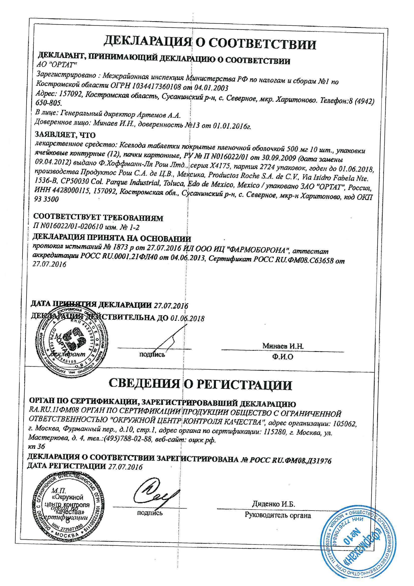 | Кселода 500 мг таблетки оригинал Европа №120 | Германия | 47 900 руб. | 120 таблеток по 500мг |